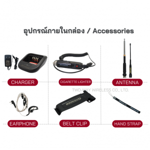 - อุปกรณ์ภายในกล่อง : ตัวเครื่อง แบตเตอรี่ ชุดแท่นชาร์จ(แท่นชาร์จ+อะแด็บเตอร์) สายชาร์จในรถยนต์ คลิปหลัง เสายาง เสาสไลด์ สายคล้องมือ หูฟัง และคู่มือการใช้งาน