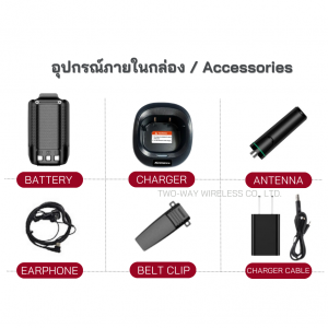 - อุปกรณ์ภายในกล่อง : ตัวเครื่อง แบตเตอรี่ หูฟัง แท่นชาร์จ อะแด็บเตอร์ สายชาร์จ คลิปหลัง สายคล้องมือ และคู่มือการใช้งาน